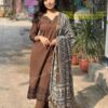 Women Pure Cotton Brown Kurti Pant Dupatta Set Size -M